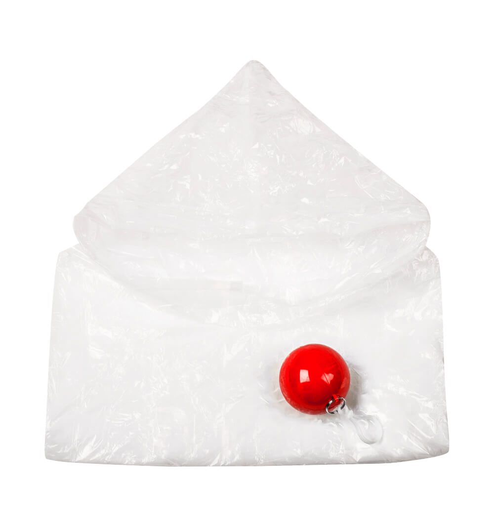 Regnponcho med hette. Leveres i praktiske oppbevaringskuler med krok. Onesize.